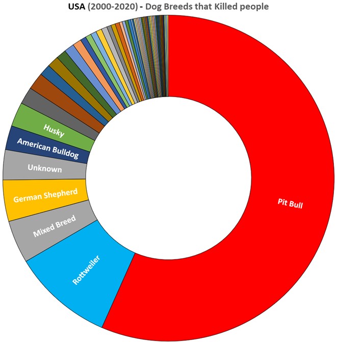 The CDC also lists cause of deaths annually- from 2000 to 2020 the number of dogs killing people is 707. It is a low number relative to the number of dog attacks, however 1/3 of the fatalities are children (0-14yo). As a parent one wants to minimise risks to kids and when you see the online injury photos of devastating bites/tears the thought is to keep control or even sterilise some of these breeds. In Australia some breeds are banned, however in the US no federal bans on certain breeds, this appears to be done only on a state/city level.